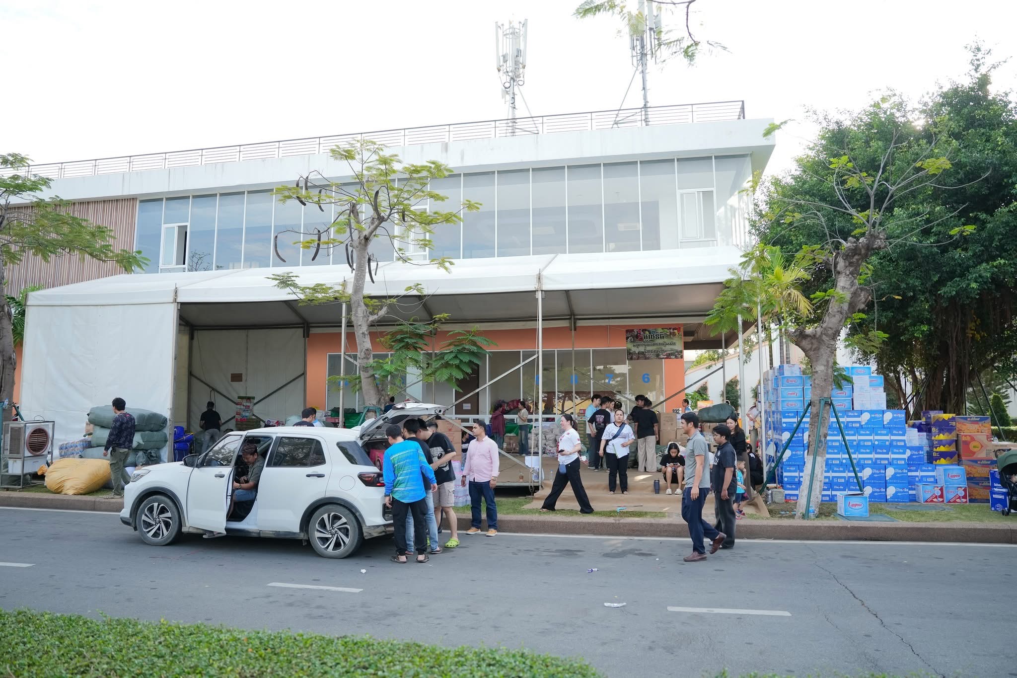 ជាមួយគ្នានេះ បុរី ប៉េង ហួត ក៏បានផ្តល់នូវទីតាំងសម្រាប់ដល់សប្បុរសជន និងបងប្អូនប្រជាជាតិខ្មែរ ពិសេសក្រុមការងារមូលនិធិដើម្បីមាតុភូមិ បើកទីតាំងសម្រាប់ការប្រមូលសម្ភារ គ្រឿងបរិភោគ និងអំណោយផ្សេងៗ សម្រាប់ជួយដល់បងប្អូនជនភៀសសឹកផងដែរ។